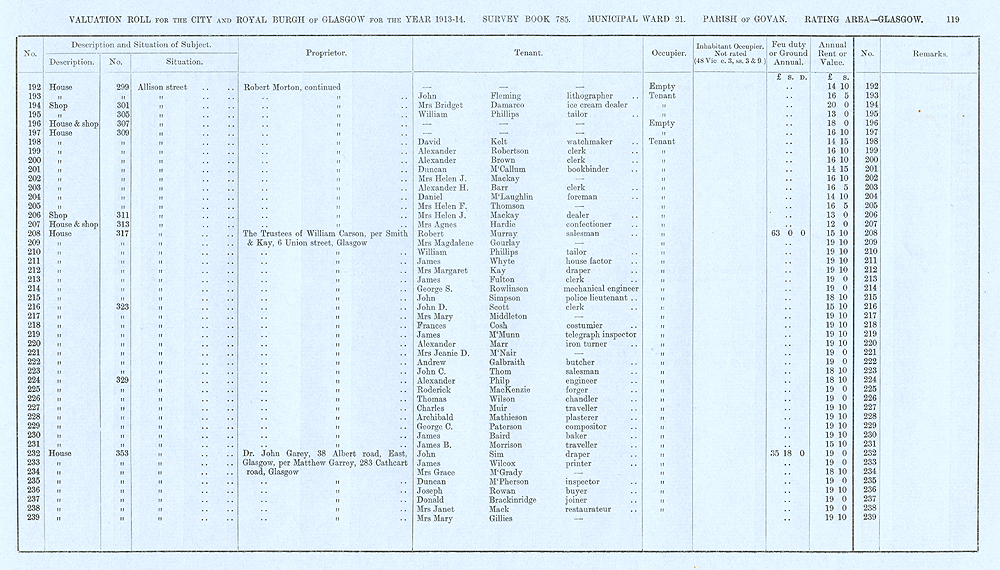 Glasgow Valuation Roll VR 1913-14, Ward 21, p119