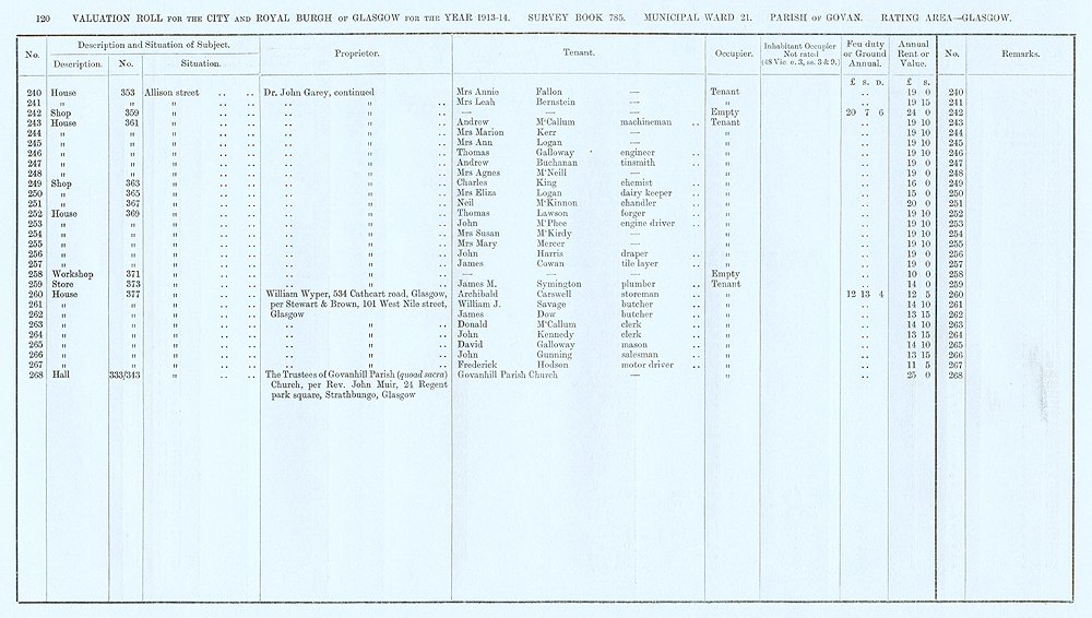 Glasgow Valuation Roll VR 1913-14, Ward 21, p120