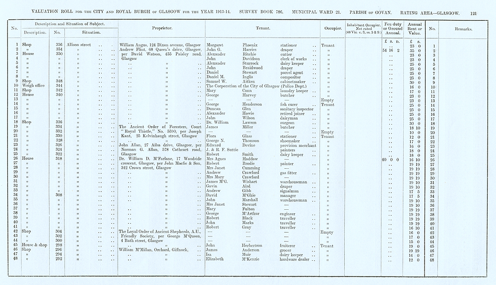 Glasgow Valuation Roll VR 1913-14, Ward 21, p121