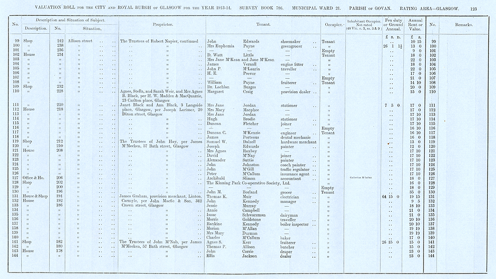 Glasgow Valuation Roll VR 1913-14, Ward 21, p123