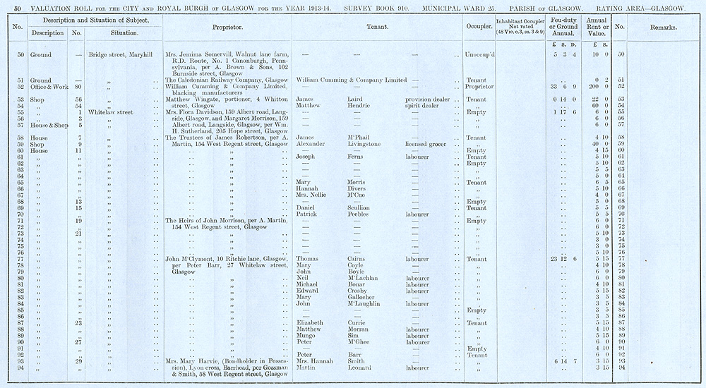 Glasgow Valuation Roll VR 1913-14, Ward 25, p050