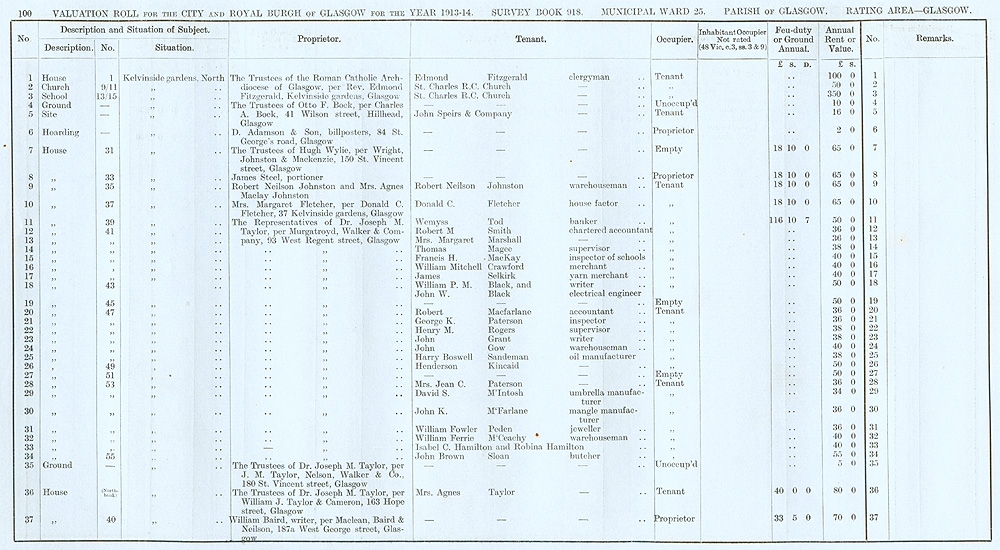 Glasgow Valuation Roll VR 1913-14, Ward 25, p100