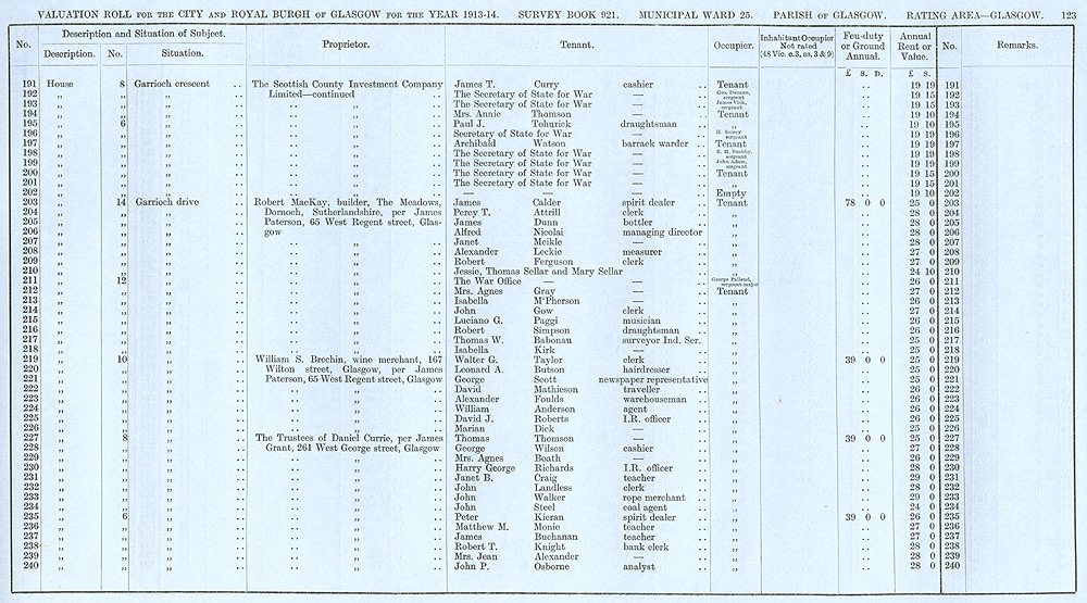 Glasgow Valuation Roll VR 1913-14, Ward 25, p123