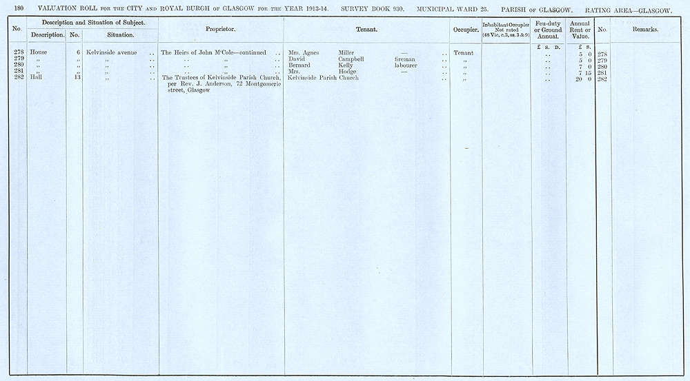 Glasgow Valuation Roll VR 1913-14, Ward 25, p180