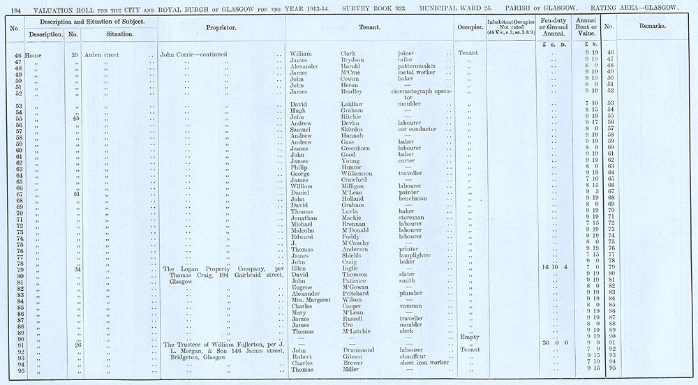 Glasgow Valuation Roll VR 1913-14, Ward 25, p194