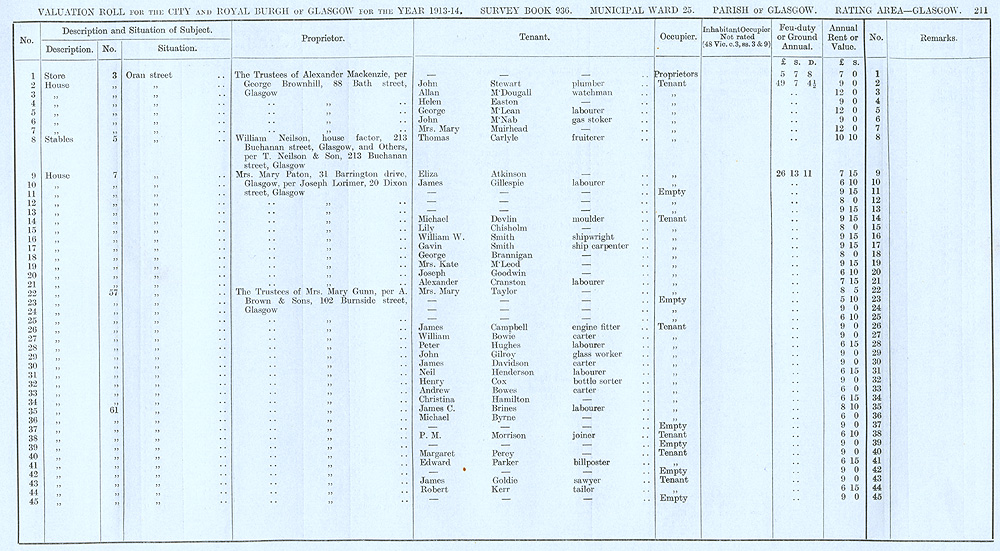 Glasgow Valuation Roll VR 1913-14, Ward 25, p211