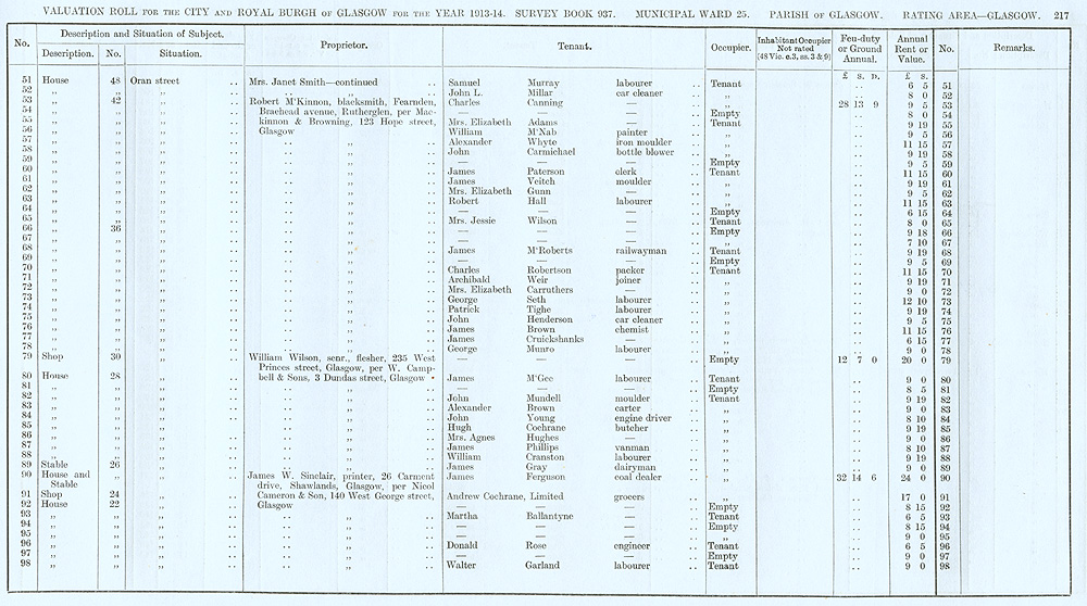 Glasgow Valuation Roll VR 1913-14, Ward 25, p217