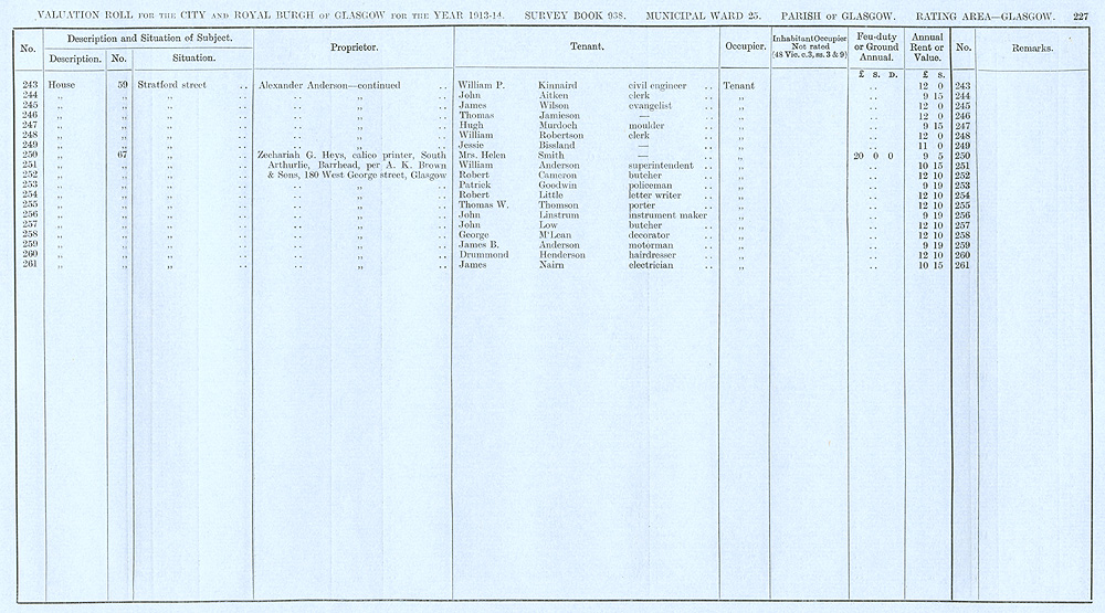 Glasgow Valuation Roll VR 1913-14, Ward 25, p227