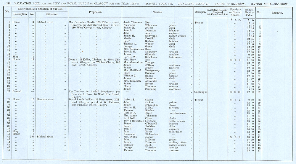 Glasgow Valuation Roll VR 1913-14, Ward 25, p246