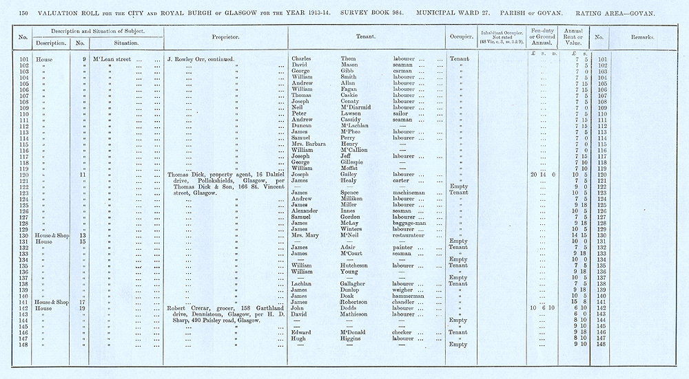 Glasgow Valuation Roll VR 1913-14, Ward 27, p150