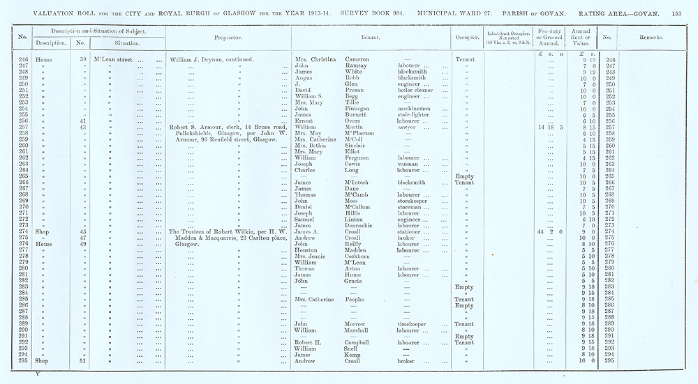 Glasgow Valuation Roll VR 1913-14, Ward 27, p153