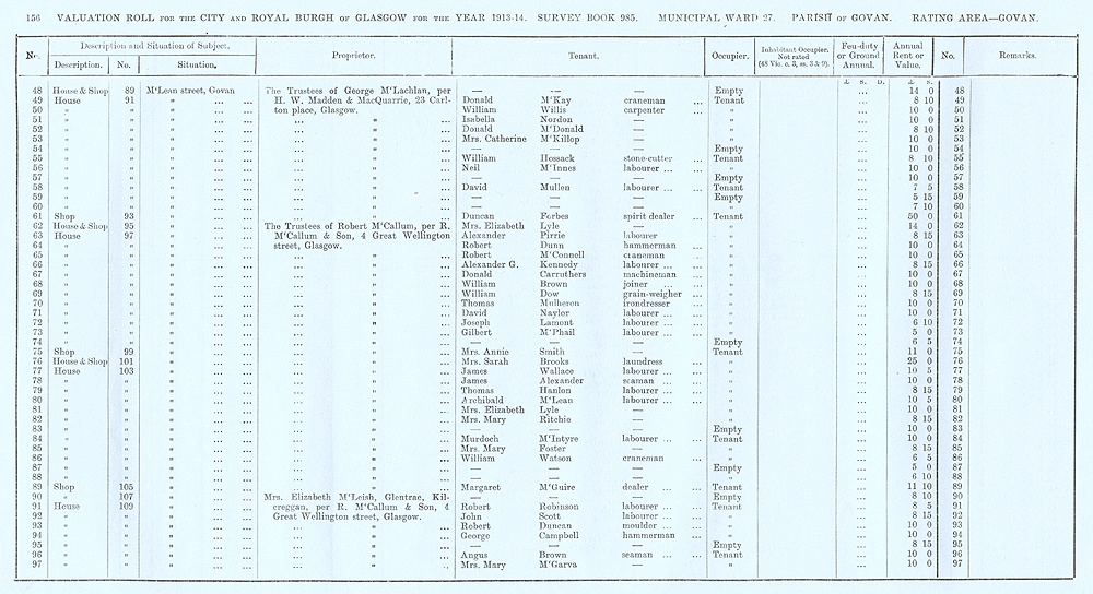 Glasgow Valuation Roll VR 1913-14, Ward 27, p156