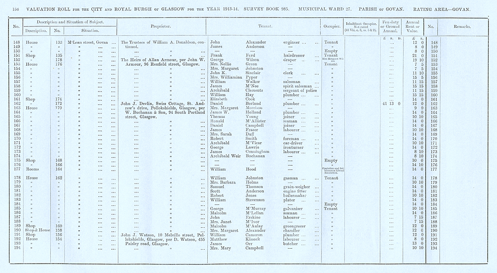 Glasgow Valuation Roll VR 1913-14, Ward 27, p158