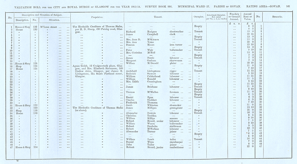 Glasgow Valuation Roll VR 1913-14, Ward 27, p161