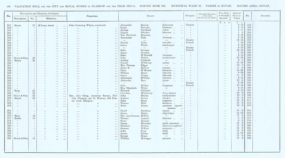 Glasgow Valuation Roll VR 1913-14, Ward 27, p166