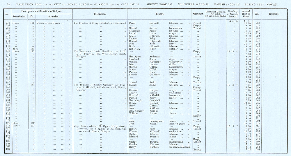Glasgow Valuation Roll VR 1913-14, Ward 28, p078