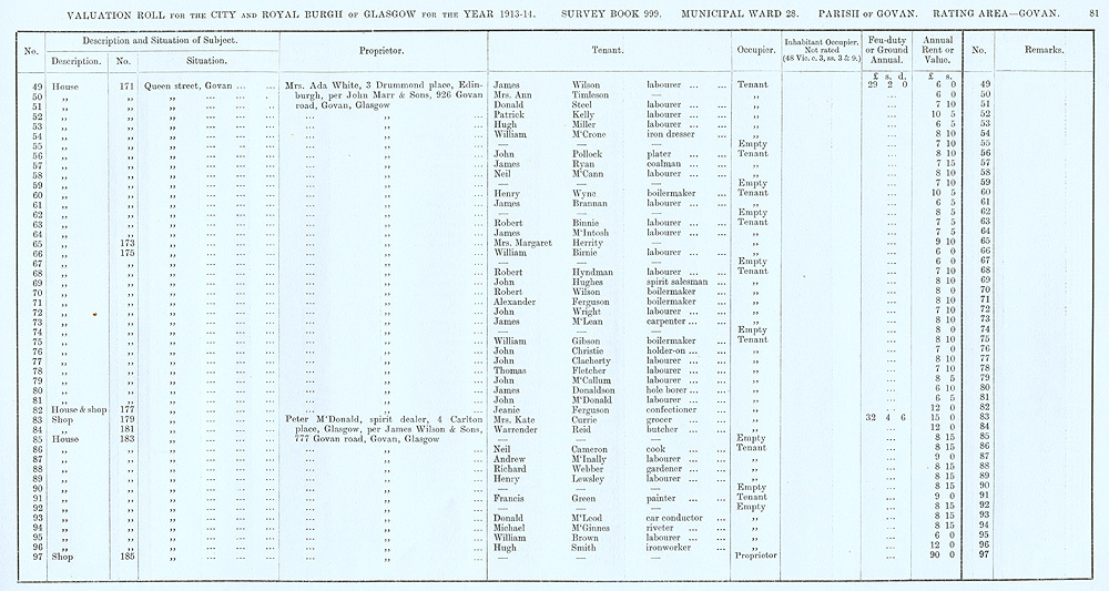 Glasgow Valuation Roll VR 1913-14, Ward 28, p081