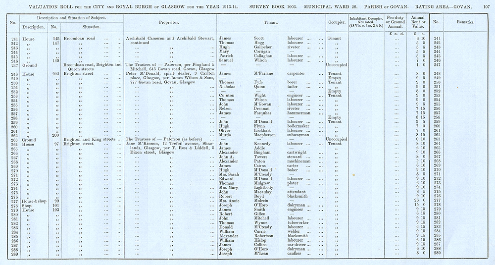 Glasgow Valuation Roll VR 1913-14, Ward 28, p107