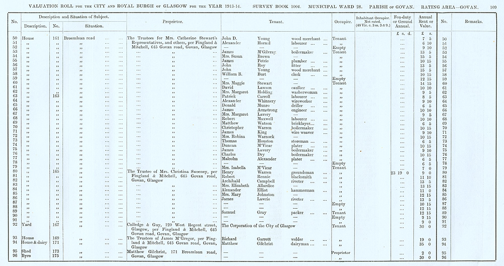Glasgow Valuation Roll VR 1913-14, Ward 28, p109