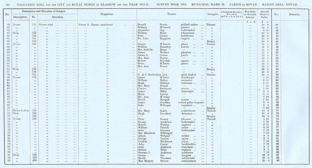 Glasgow Valuation Roll VR 1913-14, Ward 28, p120