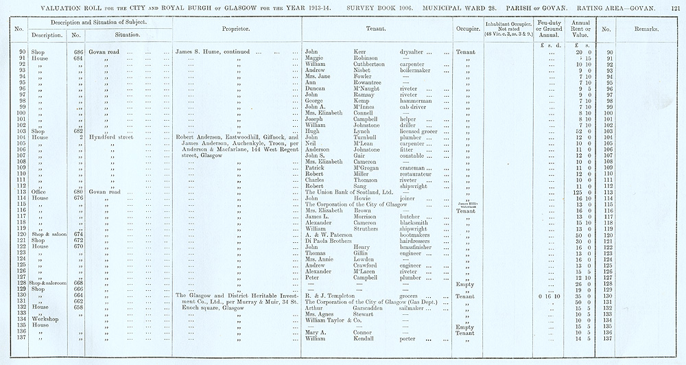 Glasgow Valuation Roll VR 1913-14, Ward 28, p121