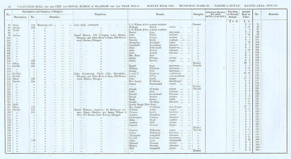 Glasgow Valuation Roll VR 1913-14, Ward 29, p036