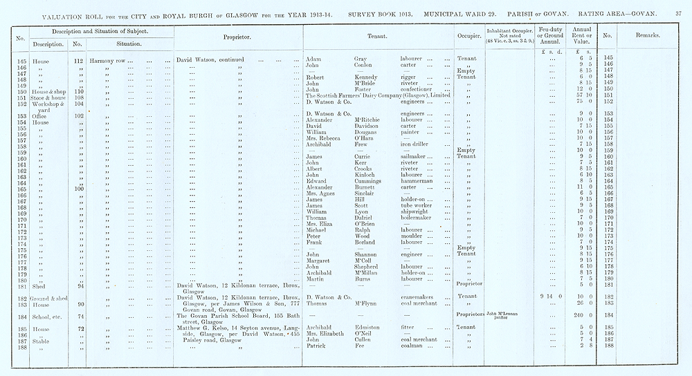 Glasgow Valuation Roll VR 1913-14, Ward 29, p037