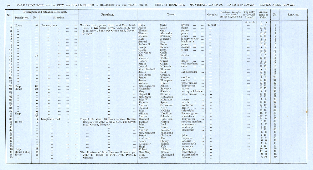 Glasgow Valuation Roll VR 1913-14, Ward 29, p040