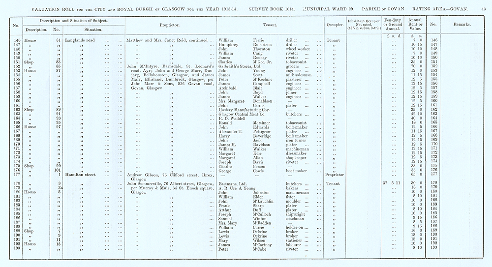Glasgow Valuation Roll VR 1913-14, Ward 29, p043