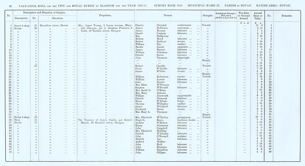 Glasgow Valuation Roll VR 1913-14, Ward 29, p046
