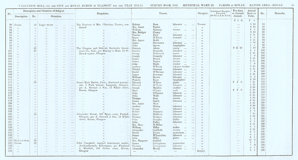 Glasgow Valuation Roll VR 1913-14, Ward 29, p055