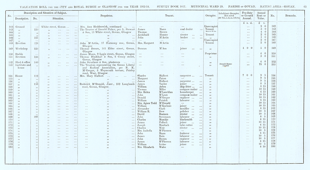 Glasgow Valuation Roll VR 1913-14, Ward 29, p063