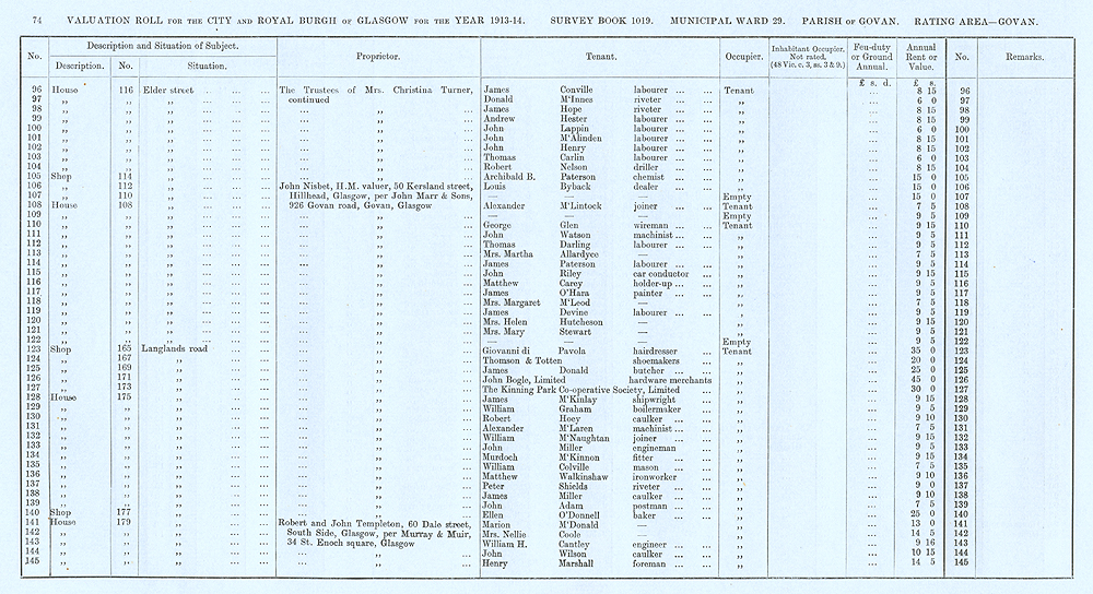 Glasgow Valuation Roll VR 1913-14, Ward 29, p074