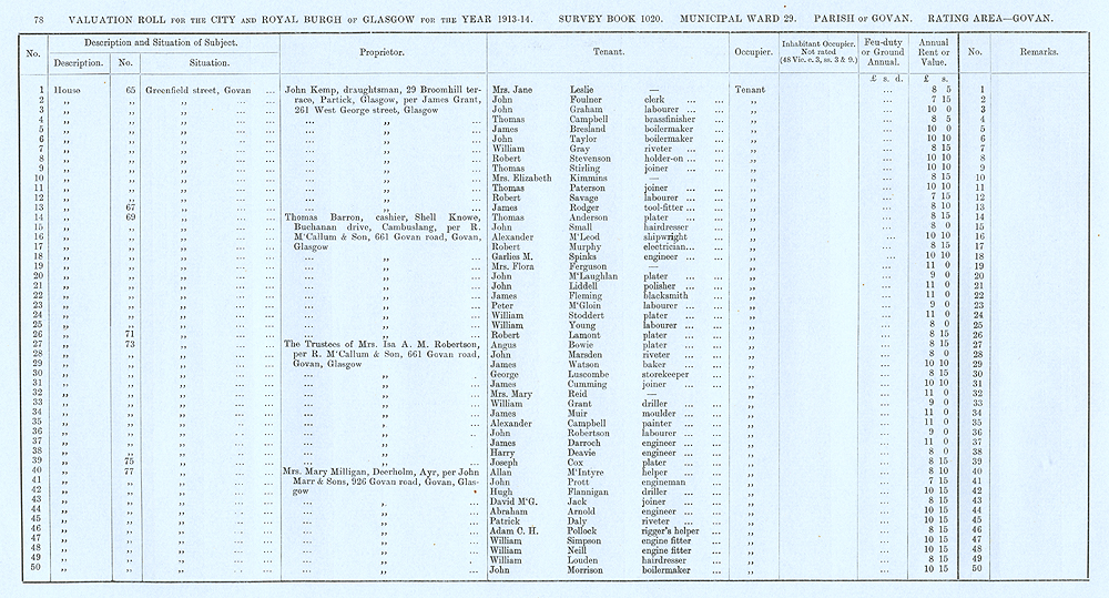 Glasgow Valuation Roll VR 1913-14, Ward 29, p078