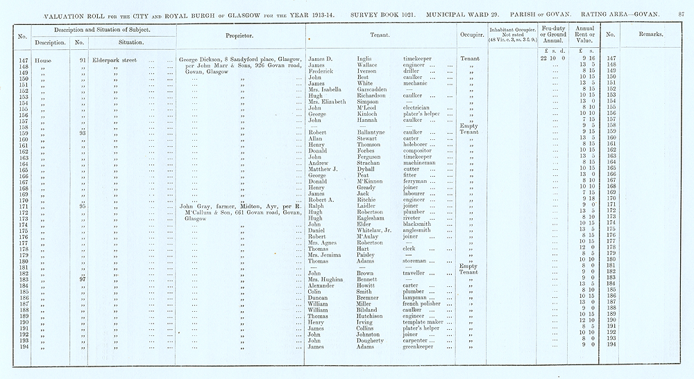 Glasgow Valuation Roll VR 1913-14, Ward 29, p087