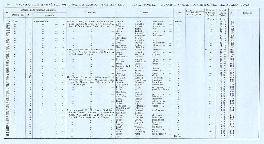 Glasgow Valuation Roll VR 1913-14, Ward 29, p088