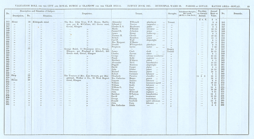 Glasgow Valuation Roll VR 1913-14, Ward 29, p089