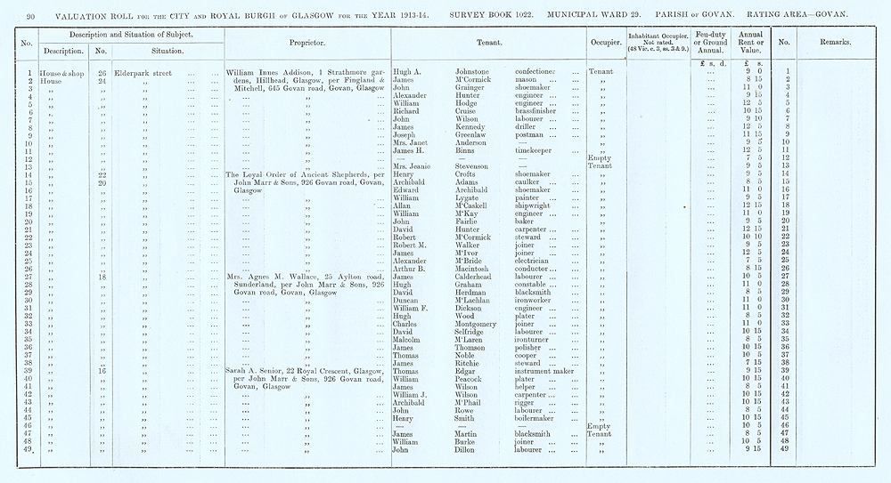Glasgow Valuation Roll VR 1913-14, Ward 29, p090