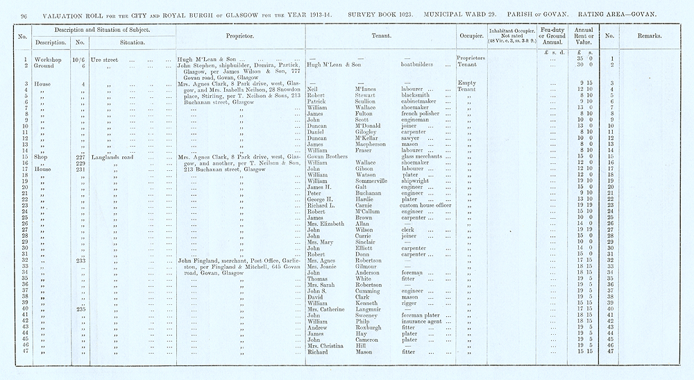 Glasgow Valuation Roll VR 1913-14, Ward 29, p096