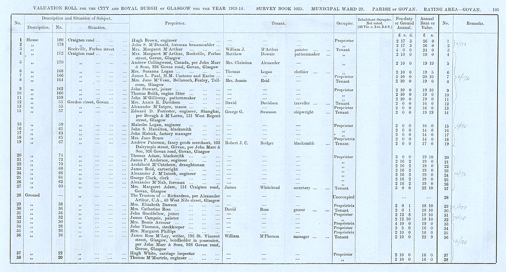 Glasgow Valuation Roll VR 1913-14, Ward 29, p105