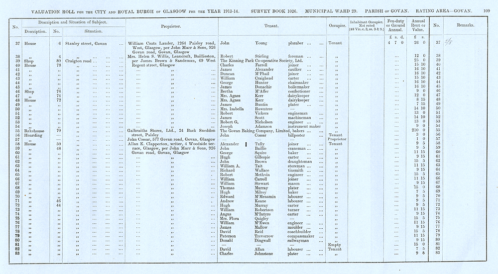 Glasgow Valuation Roll VR 1913-14, Ward 29, p109
