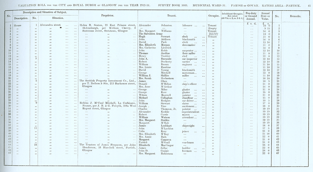 Glasgow Valuation Roll VR 1913-14, Ward 31, p045