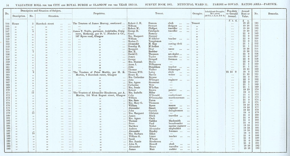 Glasgow Valuation Roll VR 1913-14, Ward 31, p054