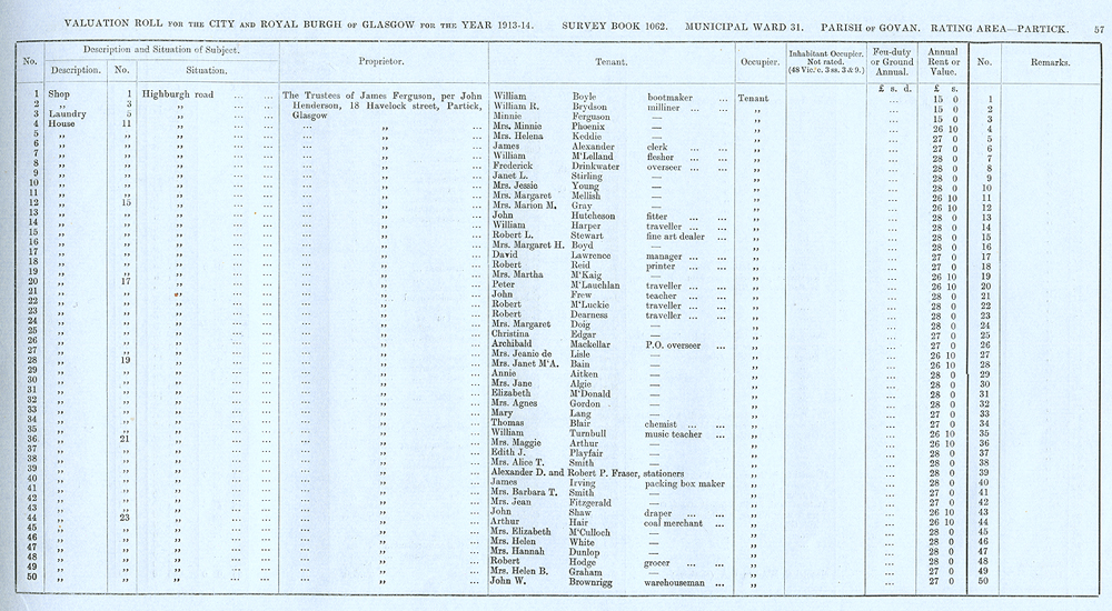 Glasgow Valuation Roll VR 1913-14, Ward 31, p057