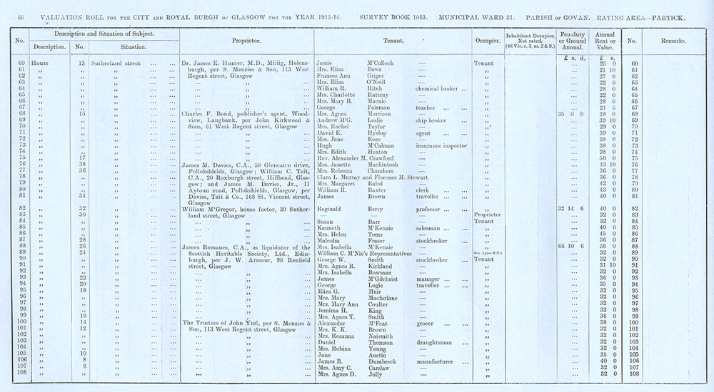 Glasgow Valuation Roll VR 1913-14, Ward 31, p066