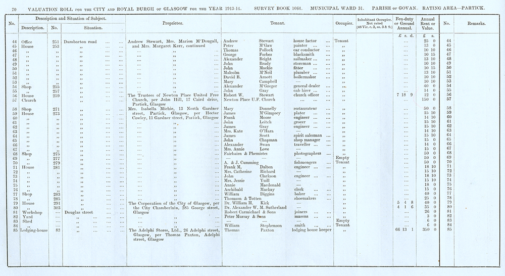 Glasgow City Archives, City Assessor's Department, Valuation Rolls