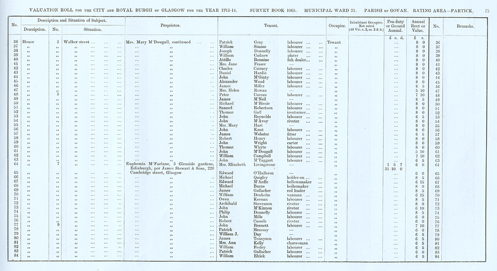 Glasgow Valuation Roll VR 1913-14, Ward 31, p075