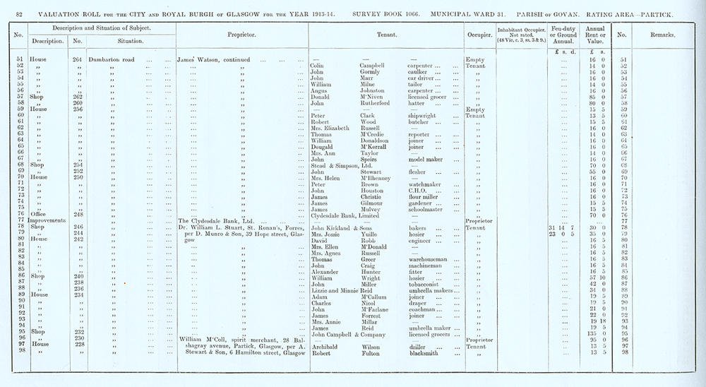 Glasgow Valuation Roll VR 1913-14, Ward 31, p082