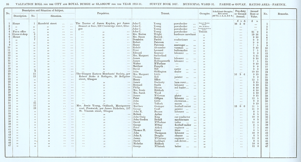 Glasgow Valuation Roll VR 1913-14, Ward 31, p086