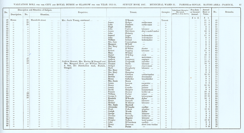 Glasgow Valuation Roll VR 1913-14, Ward 31, p087